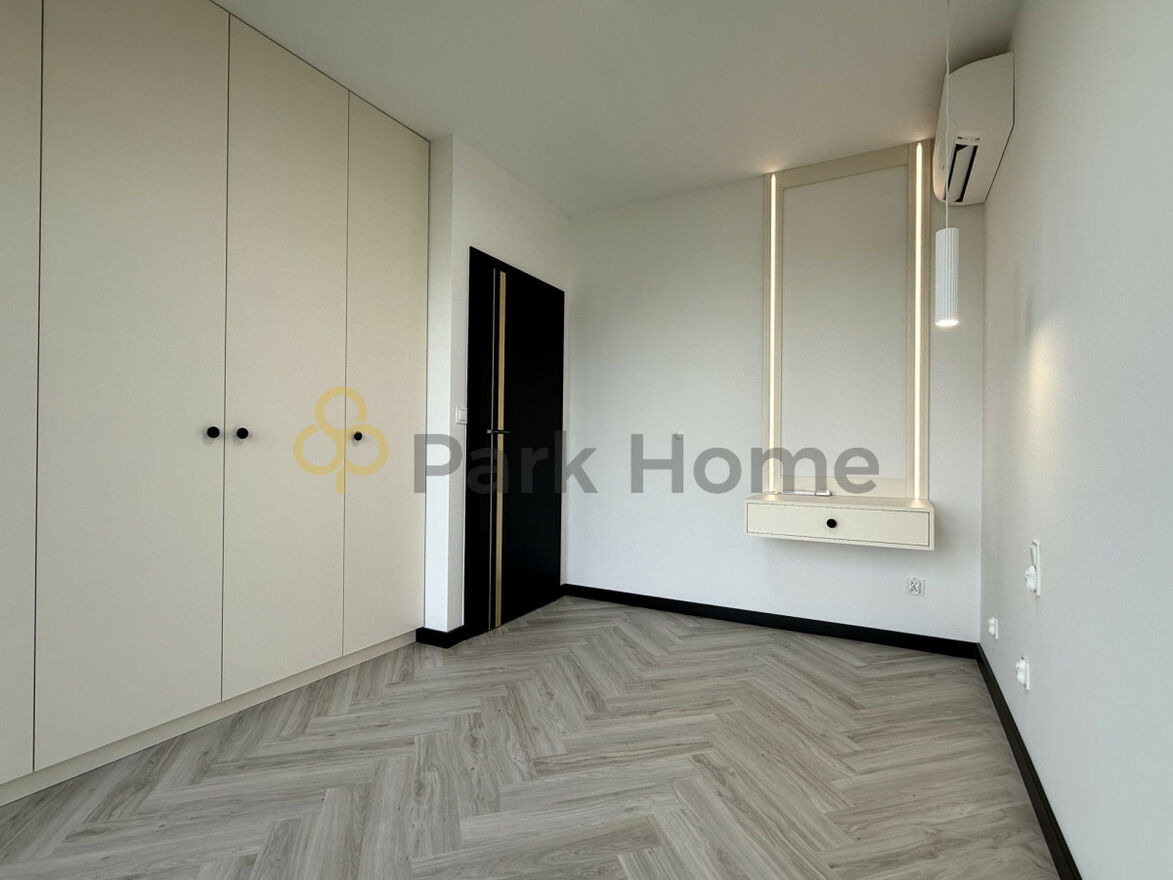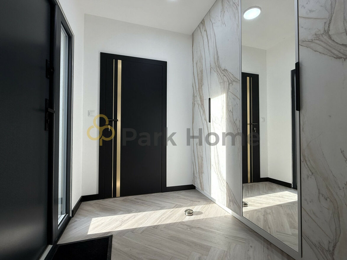 (kamienne blaty, ciche i płynne mechanizmy domykające, system cargo) oraz sprzętem AGD najwyższej klasy (lodówka, zmywarka, płyta indukcyjna z pochłaniaczem, ekspres do kawy) — wszystko nowe, na gwarancji.